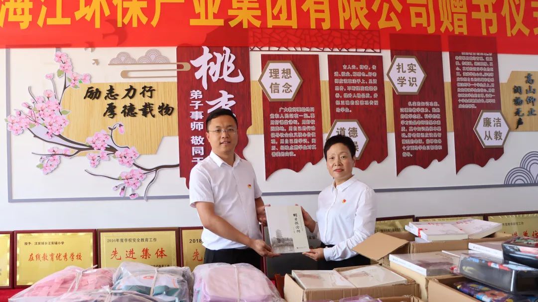 ? ? On behalf of Haijiang Group, Gao Qiying, secretary of the Party Branch, and Zhang Bojiang, deputy manager of the Enterprise Management Department, sent school bags, stationery, and other school supplies and more than 1,500 books such as "Walking Gaze", "Taste of Hometown" and "Bright Moon Full of Cangzhou" to the students in Cangzhou.