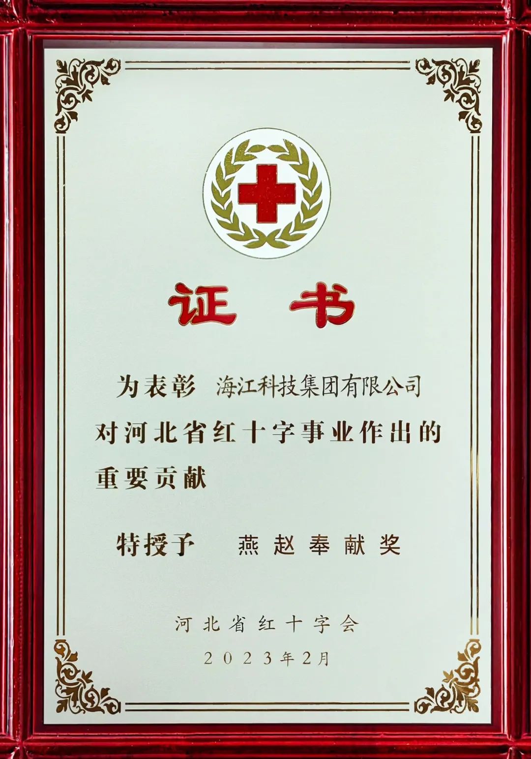 ? ? Recently, Haijiang Group was honored with "Yanzhao Dedication Award" by the Red Cross Society of China Hebei Branch. This is a recognition and encouragement of Haijiang Group to fulfill its social responsibility as well as high praise and affirmation of the company's active support for the Red Cross' humanitarian and charitable activities.