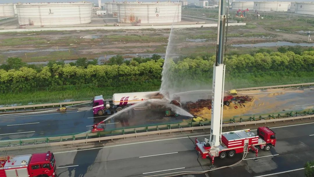 ? ? Haijiang rescue team cooperated with the Emergency Rescue Tianjin Petrochemical Team and Tianjin Fire and Rescue General Brigade to carry out the rescue method of cooling the operation box at the rear of the burning tanker and the side tanks, and assisted the traffic control department in the implementation of vehicle diversion and personnel evacuation on the accident road.