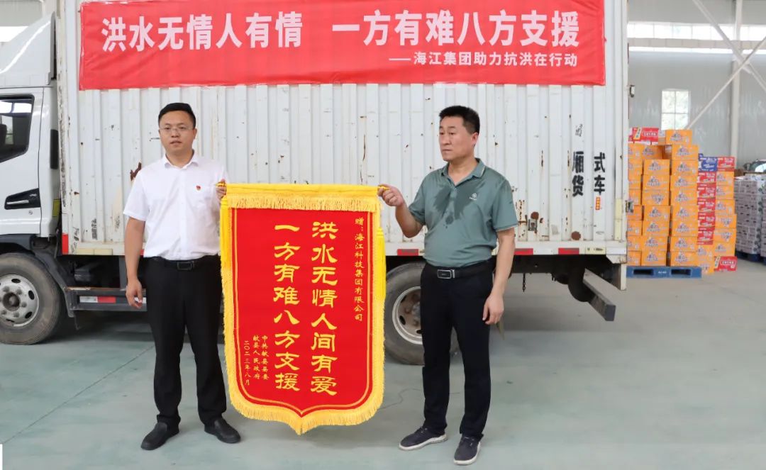? ? ?The county party committee and county government of Xianxian County sent a silk banner to Haijiang Group, highly praised the contribution of Haijiang Group and expressed their deep gratitude for this donation.