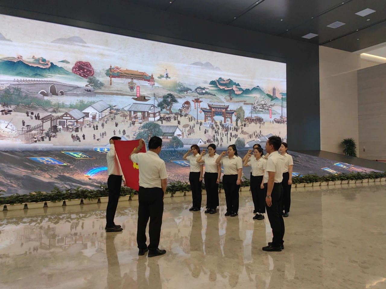 ? ? ? ?On October 1, the Party branch of Haijiang Group carried out the theme Party Day activity of "Inheriting the Canal Culture to draw striving Force", and the group organized Party members and cadres to visit and study in the Cangzhou Grand Canal intangible cultural Heritage Exhibition Hall, listen to the story of the Grand Canal, and personally feel the cultural heritage.