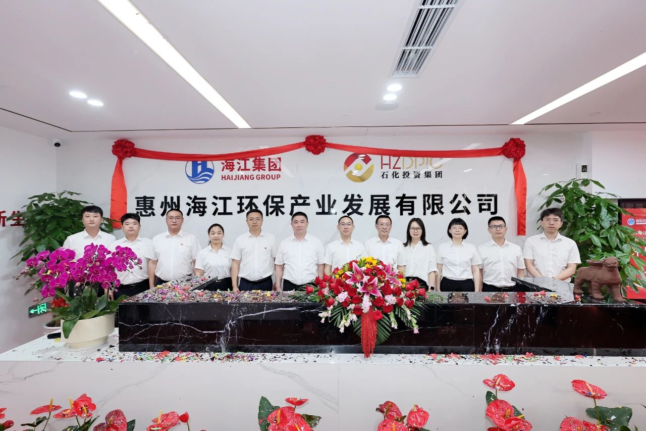 On May 9, 2025, the unveiling ceremony of Huizhou Haijiang Environmental Protection Industry Development Co., Ltd. (inafter referred to as "Huizhou Haijiang") was grandly held at Huizhou Daya Bay Port Bay Building. As an important achievement of the strategic between Beijing Haijiang Holdings Group Co., Ltd. (hereinafter referred to as "Haijiang Group") and Huizhou Daya Bay Petrochemical Group, the establishment of Huizhou Haijiang marks a new stage in the green environmental protection industry of the Guangdong-Hong Kong-Macao Greater Bay Area.