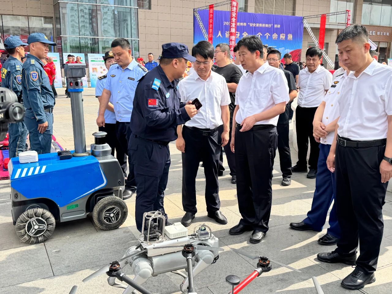 The Deputy Mayor of Cangzhou City and Director of Cangzhou Emergency Management Bureau visited the booth of Haijiang Group Rescue Team for Cangzhou Safety Promotion Day and highly praised Haijiang Group's intelligent emergency construction.