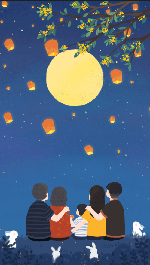 We celebrate the Mid-Autumn Festival with the bright moon in the sky