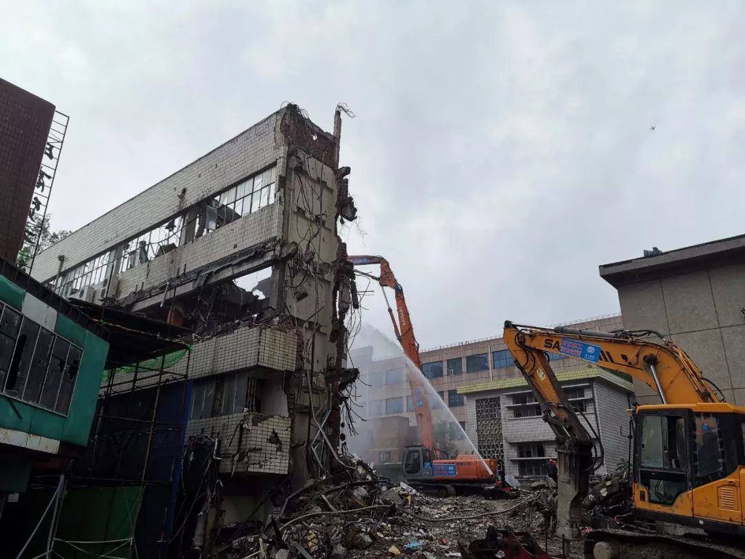 ? ?At 5:00 p.m. on August 11, the demolition operation of the south side of Bohai Building was successfully completed. In this operation, the clearance between the buildings is small, the construction work surface is narrow and difficult to operate. Haijiang Group, after many arguments, decided to use the latest intelligent hydraulic shears with the new process of load shifting directional lowering, successfully solved the problems.