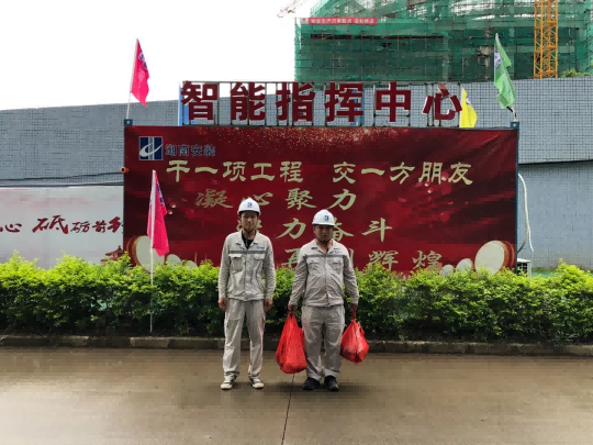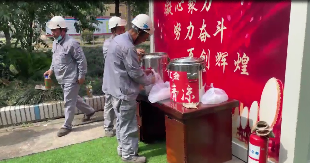 Company party secretary Gao Qi polish and trade union staff went to the site to care for each project department, sending gifts prepared by the company leaders to everyone.?As always, the front-line staff held on to their posts, striving hard and racing against time. Secretary Gao especially urged everyone to pay attention to prevent heatstroke and ensure their health. The employees have expressed their gratitude!
