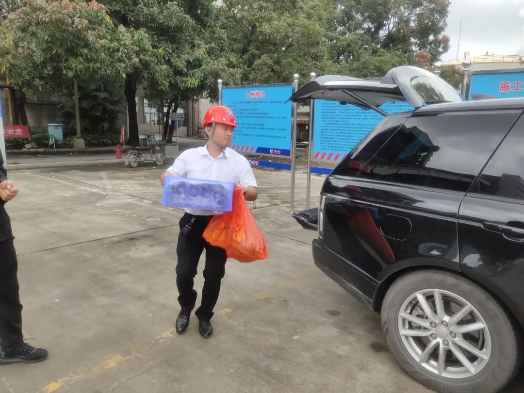 ? ? ? ?海江集團總經理褚龍、黨支部書記高琪鎣等公司高層領導赴茂名石化項目部開展高溫慰問活動,圍繞項目安全防護、風險隱患以及目前存在的問題等情況與項目團隊進行深入交流,送上了防暑降溫物品,叮囑項目部做好防暑降溫措施,合理安排生產作息時間,積極解決工友生活難題。