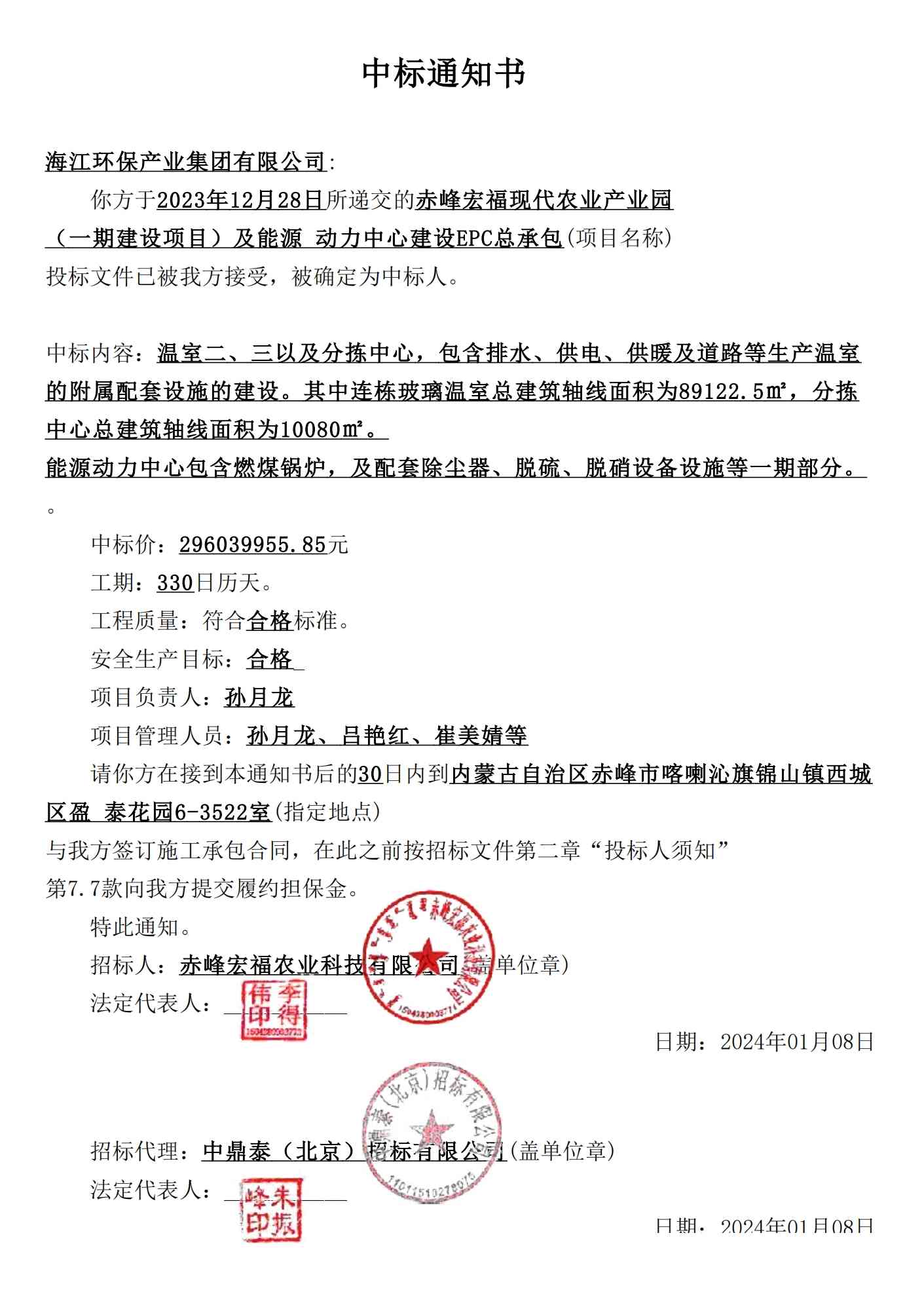 ? ? ? ?此次海江環保產業集團中標赤峰宏?,F代農業產業園一期建設項目,中標金額超2.9億元,項目總工期330天。