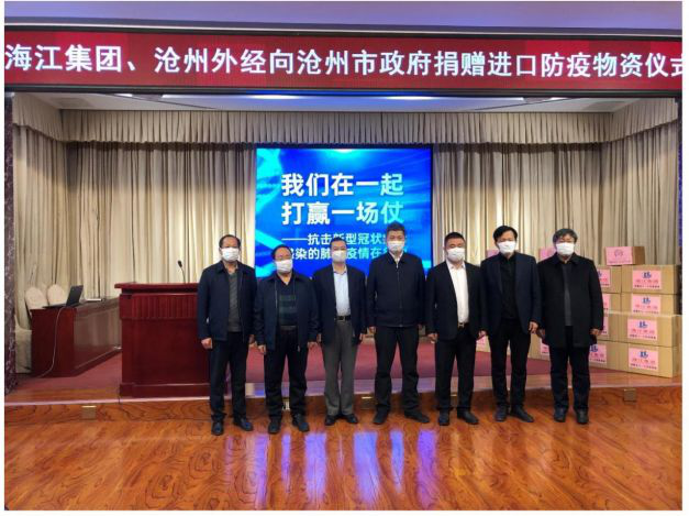 1月31日15:00滄州市市長梅世彤、副市長劉強、秘書長王彤、商務局局長孫壽常、工信局局長王健林、海江集團董事長劉海江、滄州市對外經(jīng)濟技術合作有限公司董事長尹廣軍等出席捐贈儀式。