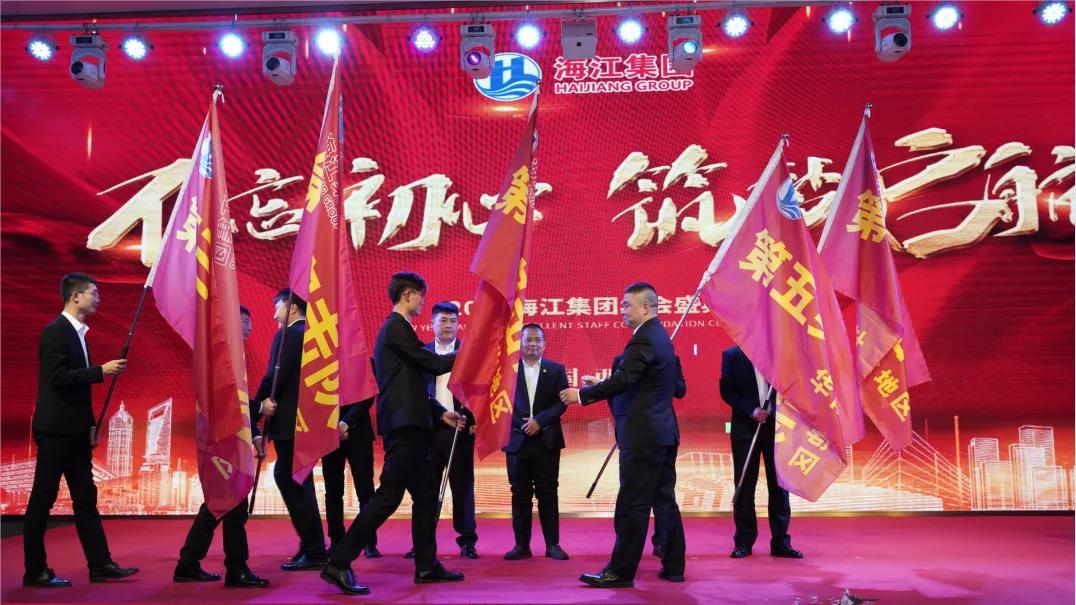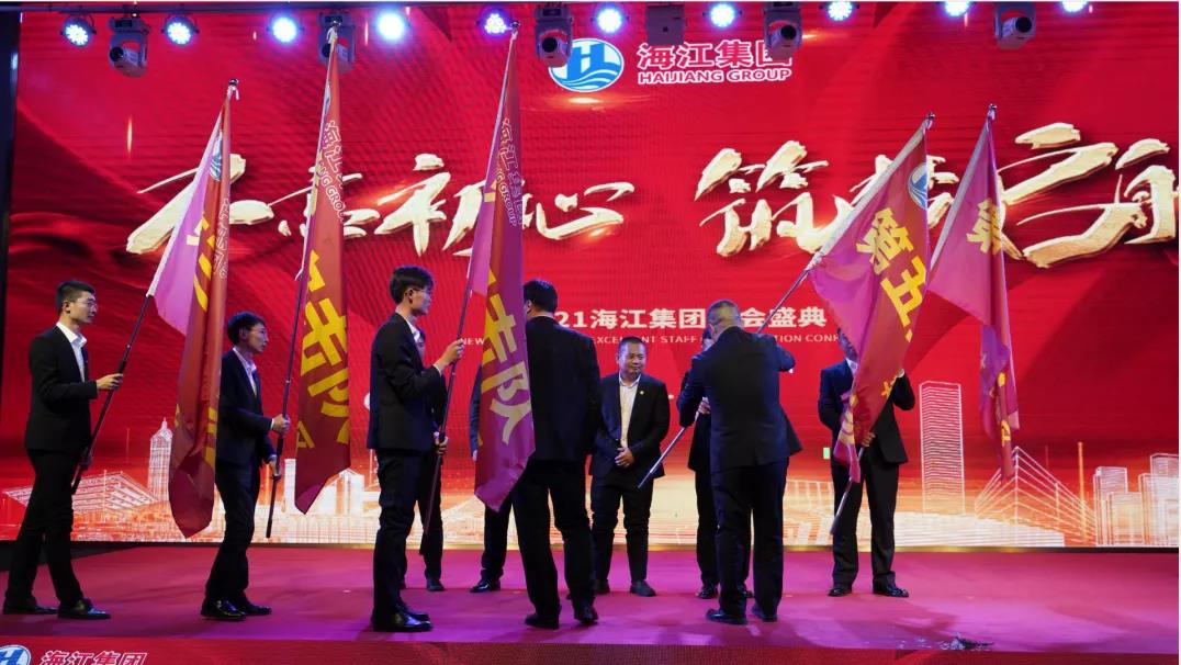 風雨兼程,奮斗與堅守鋪就了騰飛的道路?,大浪淘沙,信心與勇氣鑄就了不朽的旗幟。在海江集團中,有著這樣一支高效的隊伍,一群卓越的精英,他們攜手并進,相互扶持;他們團結互助,力爭上游;他們用服務意識、協調意識和大局意識,詮釋了真正的團隊精神。年會上,董事長劉海江為華北地區、華東地區、華中地區、西北地區、華南地區,五個地區總經理授旗,由此海江集團五只突擊隊正式成立!也標志著海江集團樹起了又一面光輝旗幟。今朝乘云起,更待騰飛躍,未來,各團隊將在生態環保的大潮中劈波斬浪,奮力開拓,拼搏進取,為建設綠水青山貢獻出巨大力量。