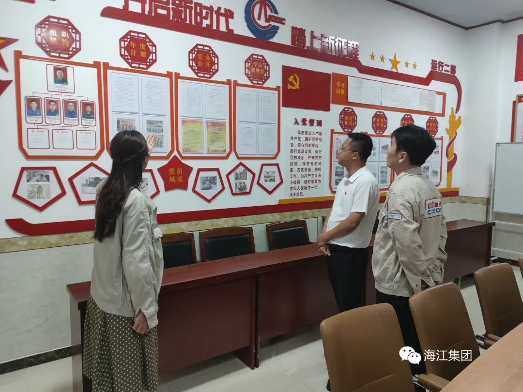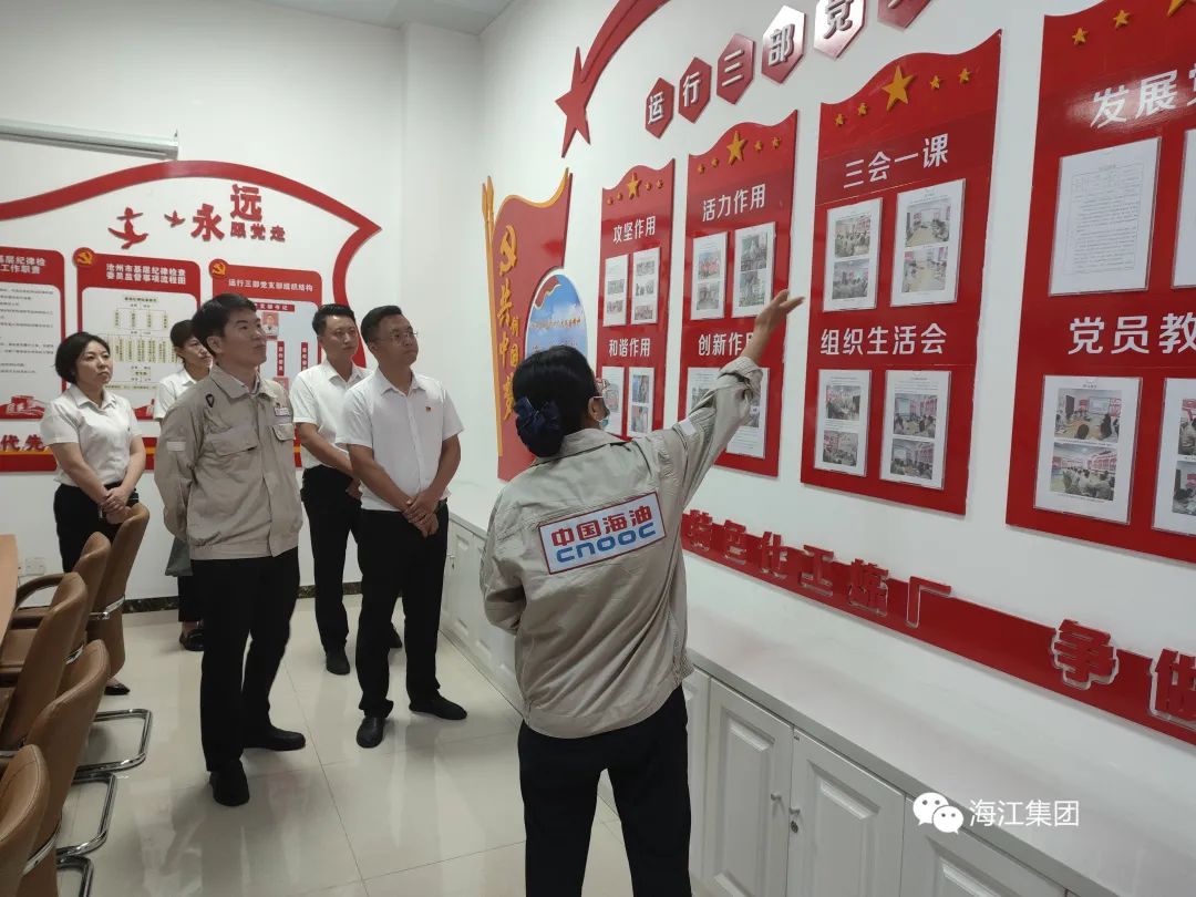 簽約儀式結束后,在中捷石化工作人員的陪同下,高琪鎣一行參觀了黨員活動室、黨建示范區等富有特色的活動場所,詳細了解中海中捷石化健康安全環保部黨支部建設情況,感受其特色黨建文化。